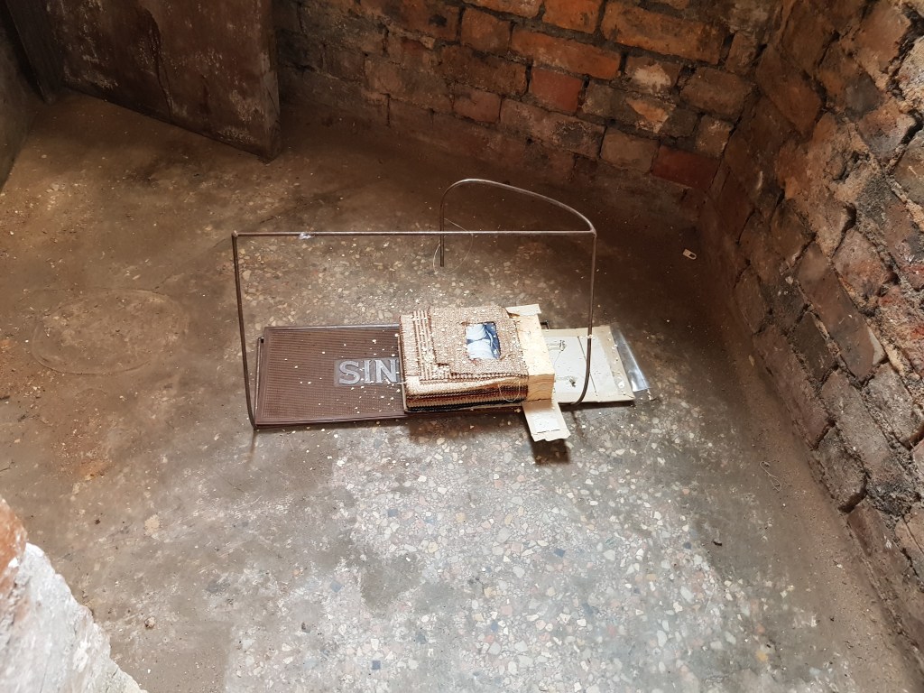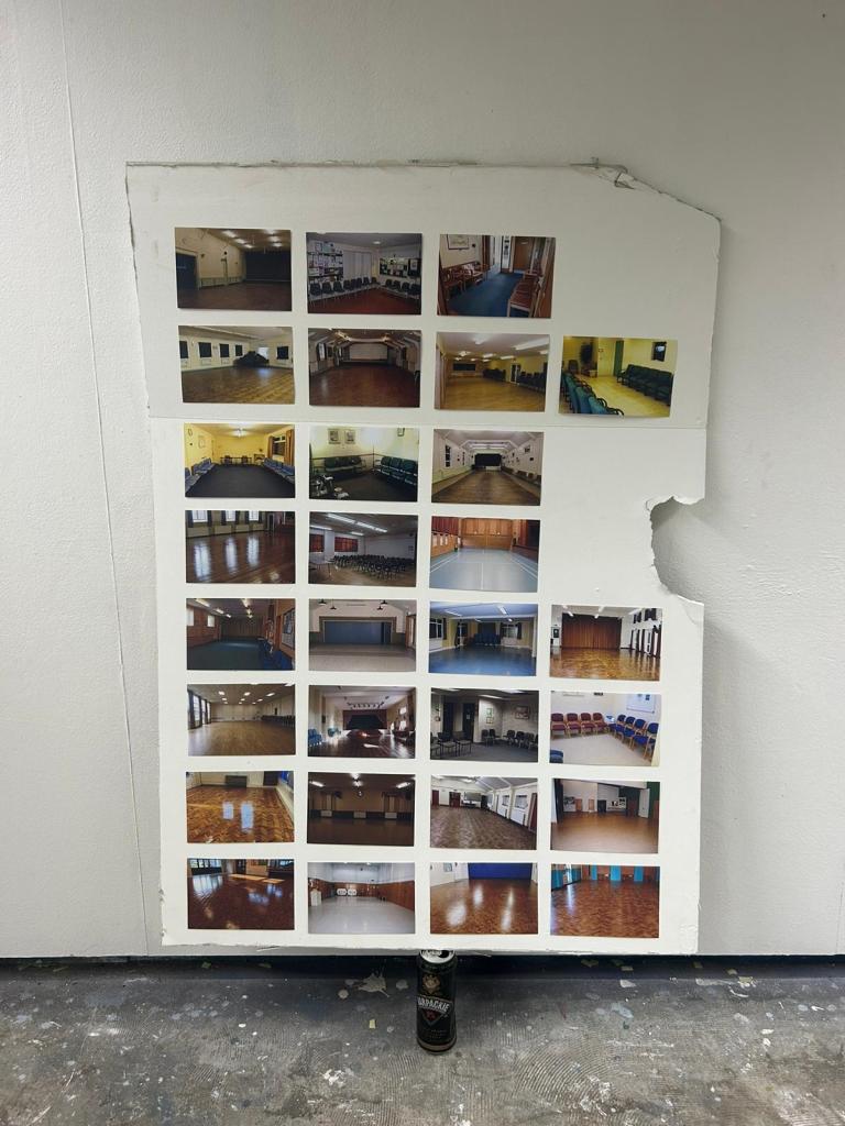 Untitled, plaster board, zerox prints, strong brew polish beer can