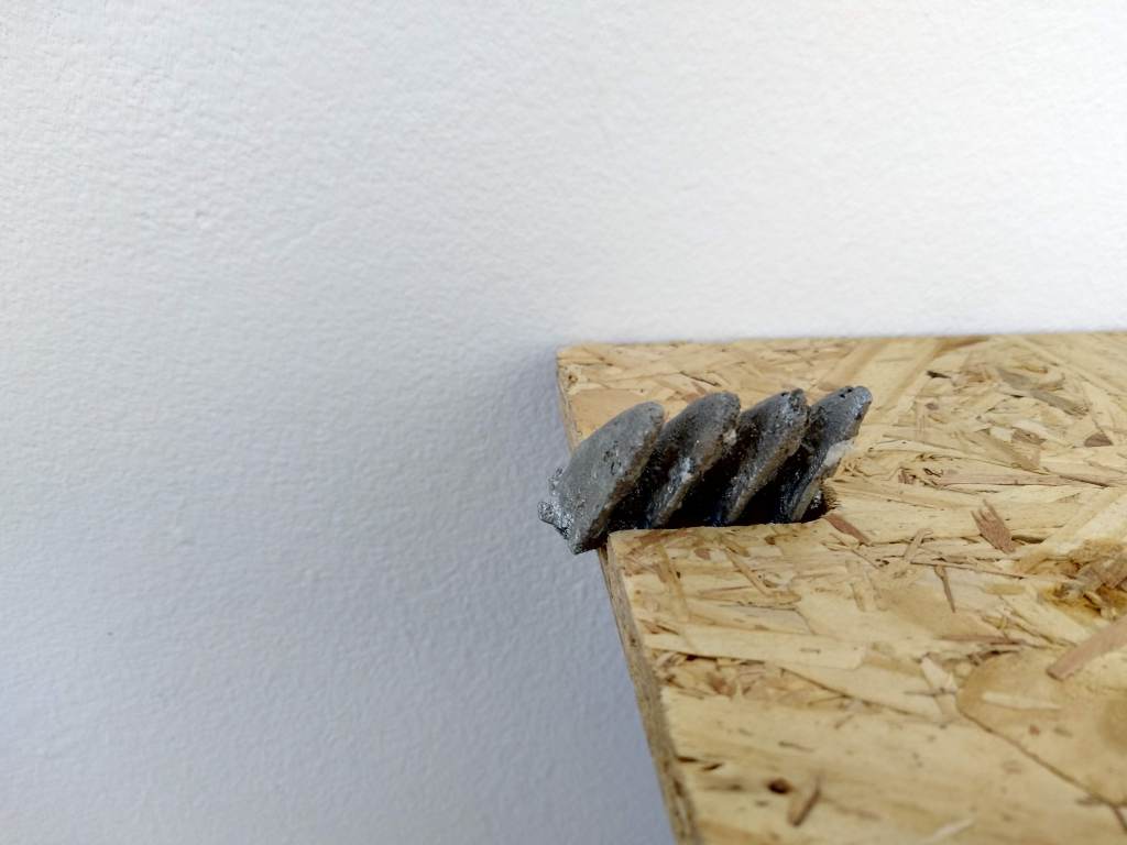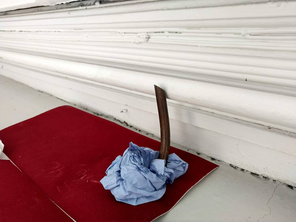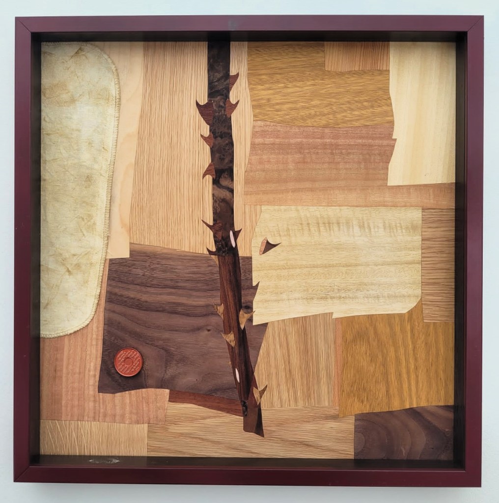 no defences, 2024, mixed wood, sobriety chip, candelilla wax, rag