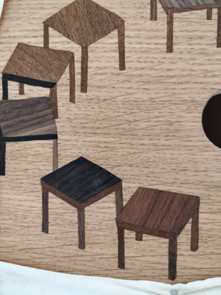 pissed pants II, mixed wood, varnish, framed in pub stool